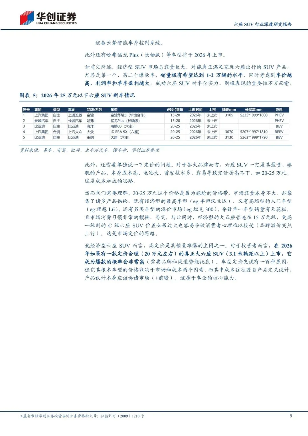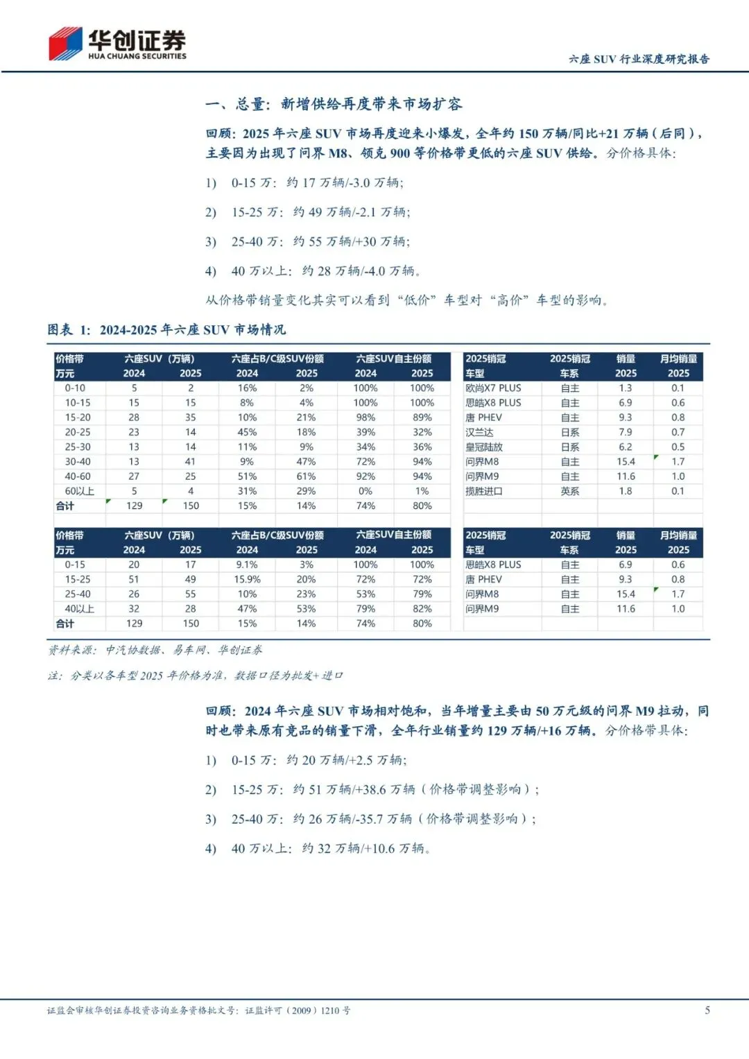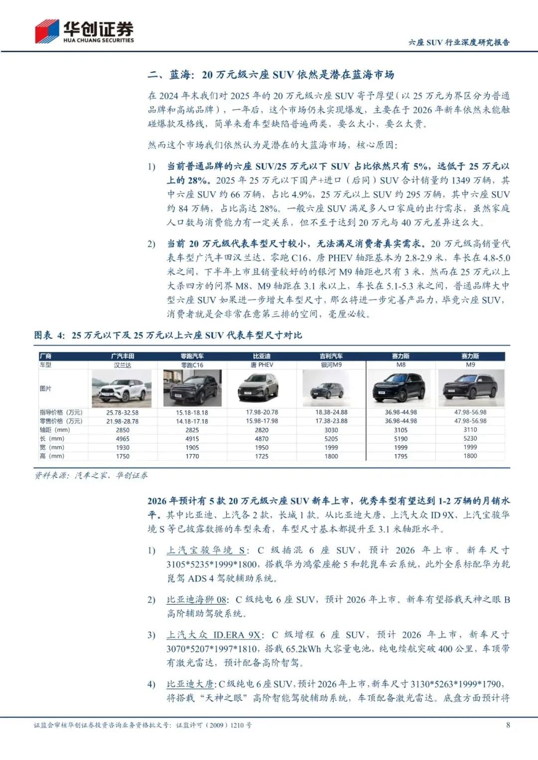 全市场六/七座SUV销量当前约150万辆/年,过去新增创造了供给,未来仍有望继续扩容。2023-2025年六/七座SUV(后简称六座SUV)市场持续有新增重磅车型带来市场扩容。尽管过去3年行业持续上新六座SUV,2026年依然将成为六座SUV新车大年(2025年19款新车、2026年预计28款)。