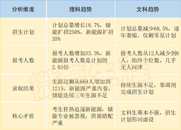 能源动力类专业的三年数据,是中国能源革命与考生心态博弈的缩影:当新能源成为时代风口,考生蜂拥而至,却忽视了储能这一同样重要的新兴赛道。河南作为生源大省,其数据放大镜般揭示了这种“名称为王”的盲目与“冷热分化”的现实。