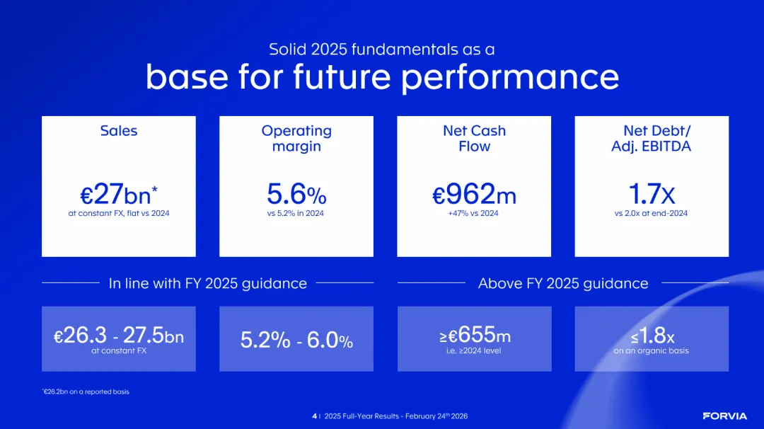 2026年2月24日,法国最大汽车零部件制造商佛瑞亚集团在总部召开了两场重要会议,第一场是公布了2025年财务数据,主动揭露集团的经营问题。第二场是召开了Capital Markets Day(资本市场日)媒体活动,正式拉开全面整治的序幕!