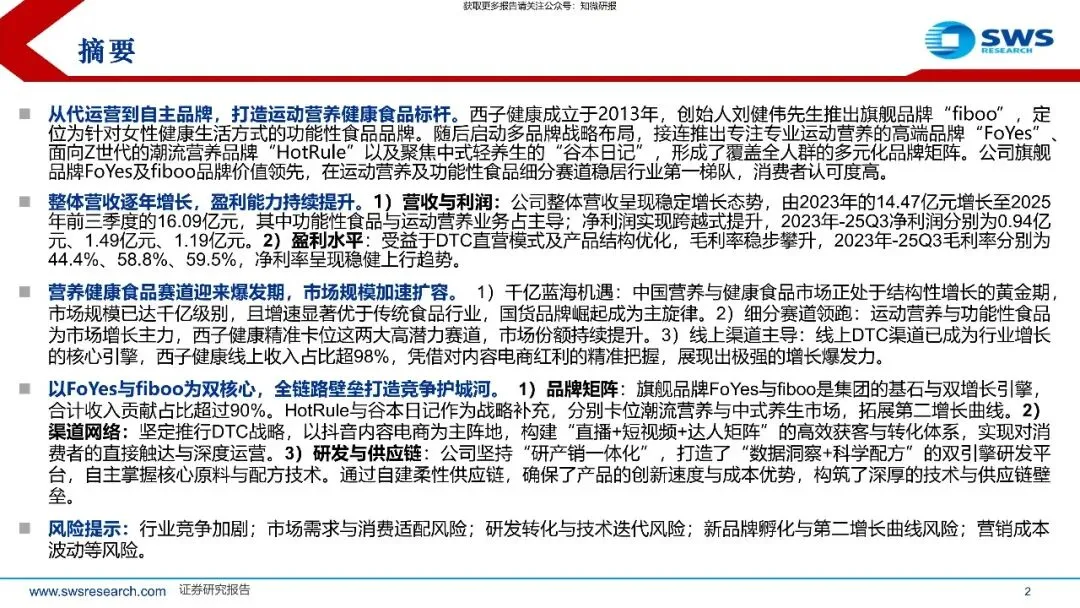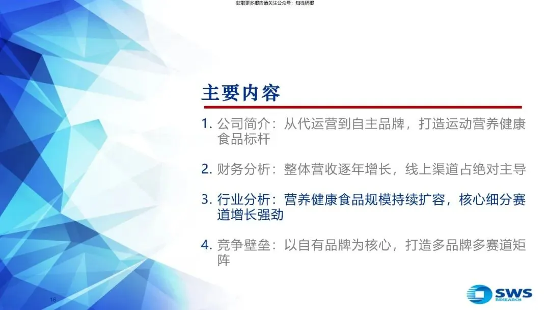 【申万宏源】营养健康行业:从西子健康看营养与健康食品行业发展趋势,从代运营转型多品牌,打造运动营养行业标杆