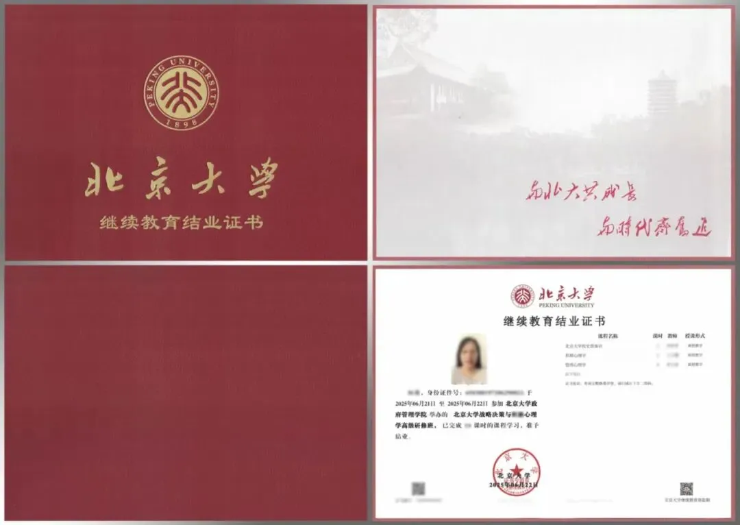 完成全部课程且学业合格者,颁发《北京大学区域经济发展与大健康产业高级研修班》结业证书,证书统一编号。结业证书可按证书编号在北京大学继续教育部网上查询。