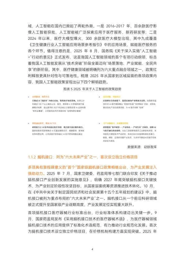 - 脑机接口: 被列为“六大未来产业”之一,并首次设立独立医疗服务价格项目(如侵入式置入费),打通商业化关键堵点。
