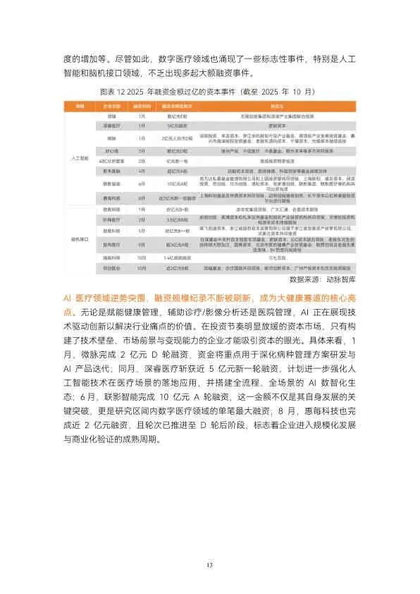 - 一级市场: AI医疗(联影智能10亿A轮)和脑机接口(阶梯医疗3.5亿B轮)刷新融资纪录。