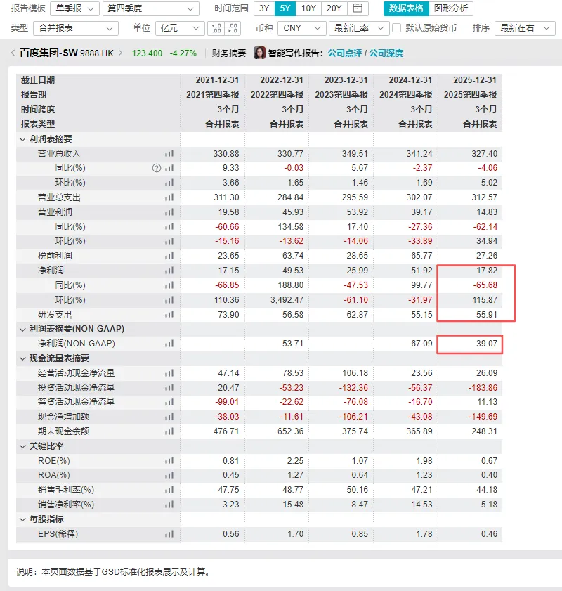 百度2025年第四季度财务业绩