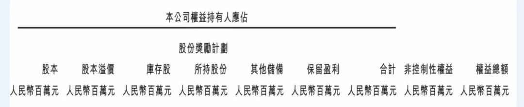 这张表是权益与负债表(单位:百万元)