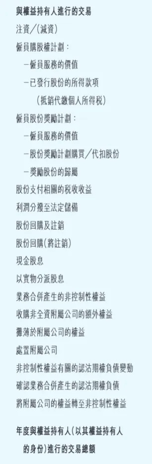 将附属公司的权益转至非控制性权益:这是指公司把自己在子公司的一部分权益,转移给了少数股东。在合并报表上,这部分权益就从 “母公司权益” 转移到了 “非控制性权益”,总股东权益不变,只是内部结构变了。