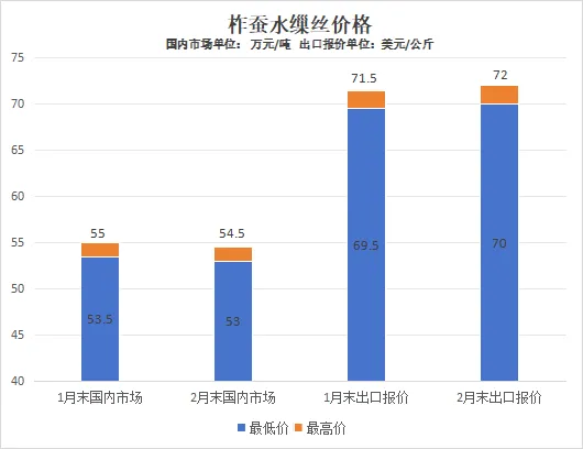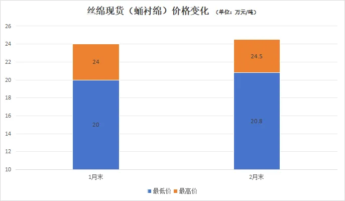 图3:柞蚕水缫丝价格(1月末-2月末)数据来源:中国茧丝绸交易市场统计