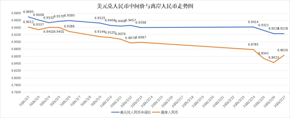 2026年2月,人民币汇率延续1月份的强势升值态势。