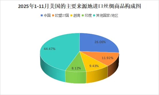 图8:2025年1-11月美国的主要来源地进口丝绸商品构成图(美国商务部数据)