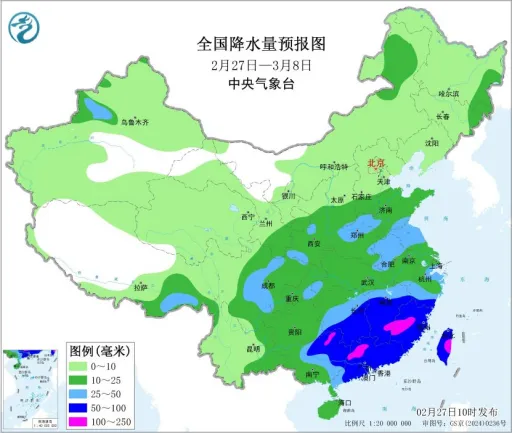 图11:全国降水量预报图(2月27日一3月8日)来源:中央气象台