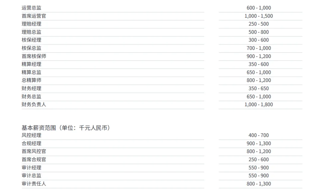 打开最新发布的《中国大陆薪酬报告 2026 》 ,保险行业的薪资数据着实亮眼, 一系列高薪数据似乎印证了保险从业者的“ 金融精英 ”地位。但当不少内勤对照这份报告时,不禁感叹“ 被平均 ”。这份由国际知名招聘机构 Michael Page 出具的权威报告,究竟统计了哪些人?普通从业者为何会落差?今天大橘就来拆解这份报告,聊聊保险行业薪资的真相。《中国大陆薪酬报告 2026》覆盖了银行与金融服务、医疗与生命科学等 12 个核心行业,其中保险行业作为金融服务领域的重要分支,其薪资数据基于全国范围内主流险企、外资保险公司及保险科技公司的真实招聘需求与薪酬发放记录整理而成,具备较强的参考价值。需要明确的是,报告中统计的保险从业人员并非全行业覆盖,而是聚焦于中高层管理、核心专业技术及关键业务岗位。从整体数据来看,保险行业核心岗位的年薪普遍集中在 25-200 万区间,其中管理层与稀缺专业技术岗的薪资水平显著高于全行业平均水平,尤其是精算、核保、风控等需要专业资质与多年经验积累的岗位,薪资溢价效应明显,这也使得保险行业在金融领域的薪资竞争力稳居前列。但光鲜数据的背后,是行业内严重的薪资分化。报告呈现的“高薪图景”, 更多反映的是头部岗位的收入水平,而占行业从业人员相当比例的基层岗位并未纳入统计。从报告披露的薪酬数据来看,保险行业的薪资呈现清晰的“金字塔”结构,不同岗位的收入差距显著,核心高薪集中在管理、专业技术与关键业务三大板块。管理岗作为行业薪资的第一梯队,薪资水平领跑全行业。分公司总经理年薪区间为 70-130 万,个险、银保、团险、网络电销四大渠道负责人的年薪均在 50-100 万。此外,首席运营官、财务负责人等高管岗位,年薪普遍在 100-180 万, 管理人员构成了 行业薪资的“天花板” 群体。精算、核保、理赔等专业技术岗凭借其不可替代性,成为高薪的核心组成部分。总精算师年薪 80-120 万,精算总监 65-100 万,作为保险行业的 “金领岗位”,需要通过多门精算师考试,具备扎实的数理基础与行业经验;核保领域的首席核保师年薪 90-120 万,核保总监 70-100 万,承担着风险评估与管控的核心职责;理赔总监年薪 50-80 万,虽然薪资低于精算与核保,但仍显著高于普通行业专业岗位。业务与运营支持岗构成了行业的中坚力量,薪资水平处于中等偏上区间。产品经理年薪 30-60 万,产品总监 50-80 万,培训经理年薪 25-55 万,培训总监 50-90 万。 当然, 这些岗位的薪资与岗位层级、所在城市及公司规模密切相关, 按照经验, 头部险企与一线城市的薪资普遍高出10%-20%。风控合规与财务岗作为保障企业稳健运营的关键岗位,薪资表现 突出 。首席风控官年薪 80-120 万,合规总监 80-150 万,在监管趋严的背景下,这类岗位的需求持续上升;财务总监年薪 65-100 万,审计经理 55-90 万,凭借其专业的财务知识与风险管控能力,成为行业不可或缺的高薪群体。当这些分析机构沉浸在保险行业的高薪图景中时,却忽略了一个重要群体——基层内勤。对照报告中的薪资数据, 缺少基层内勤的收入数据。事实上,内勤收入 水平与报告呈现的“高薪” 形象相去甚远。报告聚焦的是具备管理职责、专业资质或核心业务能力的中高端岗位,而基层内勤多为执行层面的支持性岗位,包括行政、操作岗、助理、专员等, 从报告看, 这类岗位并未被纳入统计样本。现实中,基层内勤的收入水平普遍偏低,一线城市年薪多在 6-10 万,二三线城市仅为 5-8 万,月薪集中在 4000-8000 元,与报告中最低25万的年薪门槛相差甚远。- 一是薪资天花板低,多数岗位工作 3-5 年后年薪涨幅不足 20%,难以突破 15 万大关;