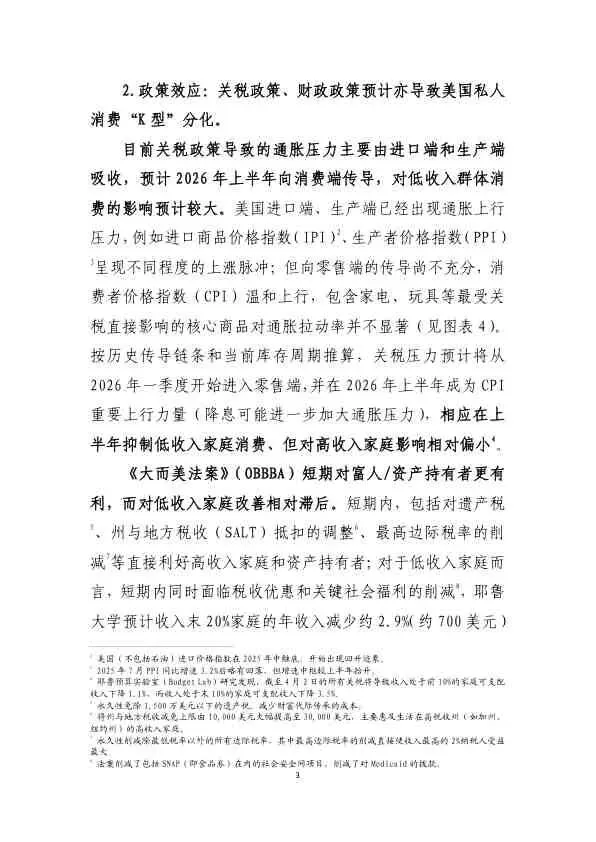 - 驱动因素: 薪资增速分化、财富效应、关税成本传导。