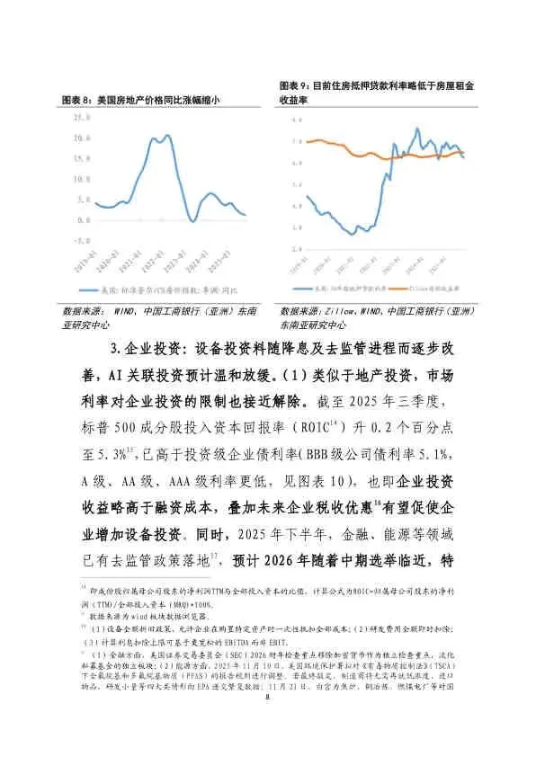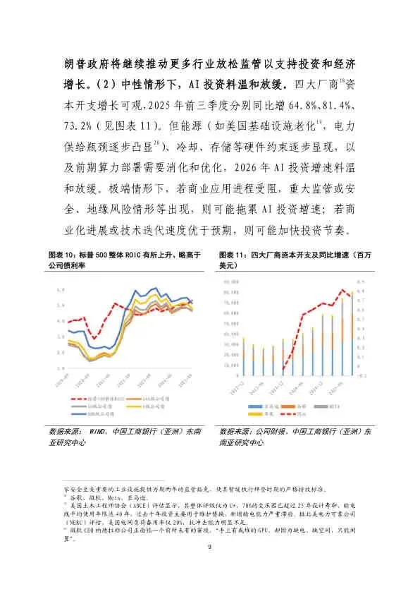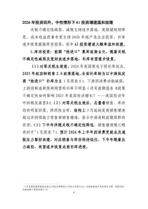 - AI投资: 受能源、冷却等硬件瓶颈及前期算力消化影响,增速料将温和放缓。
