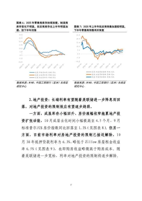 - 地产投资: 长端利率随降息回落,限制效应趋弱,但房价涨幅收窄、库存回升构成拖累。