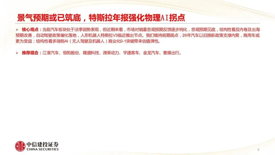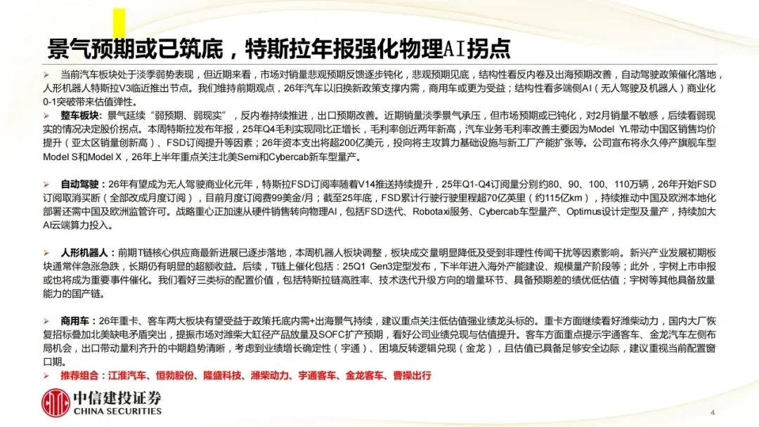 汽车行业动态报告:景气预期或已筑底,特斯拉年报强化物理AI拐点
