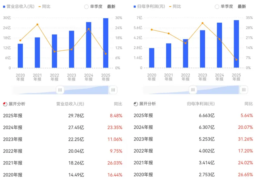 从其业务来看,该公司属于稳健增长型企业。可2025年度报告中,营收和净利润的增长幅度从原来的两位数变成了个位数,那么,该公司会不会从稳健增长型变成缓慢增长型呢?