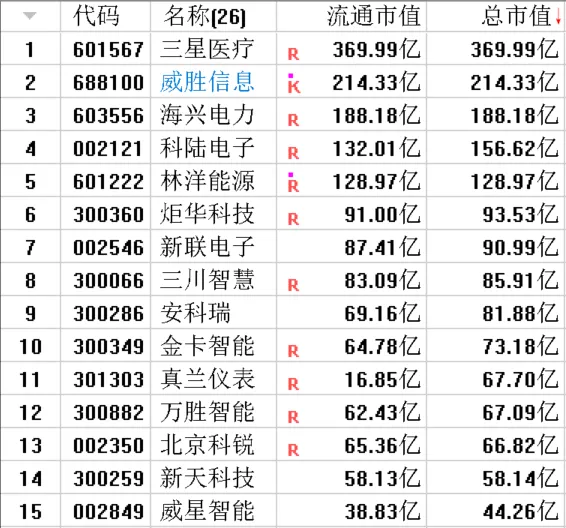 从市值排名来看,排名前三位的分别是:三星医疗、威胜信息和海兴电力。有6家公司总市值在30亿以下,有6家公司总市值在30亿到50亿之间。
