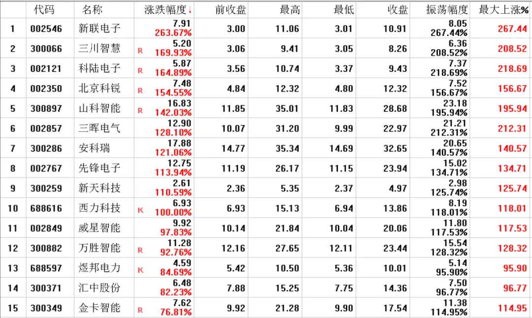 自2024年9月24日至今,这26家公司涨幅前15名情况如下。