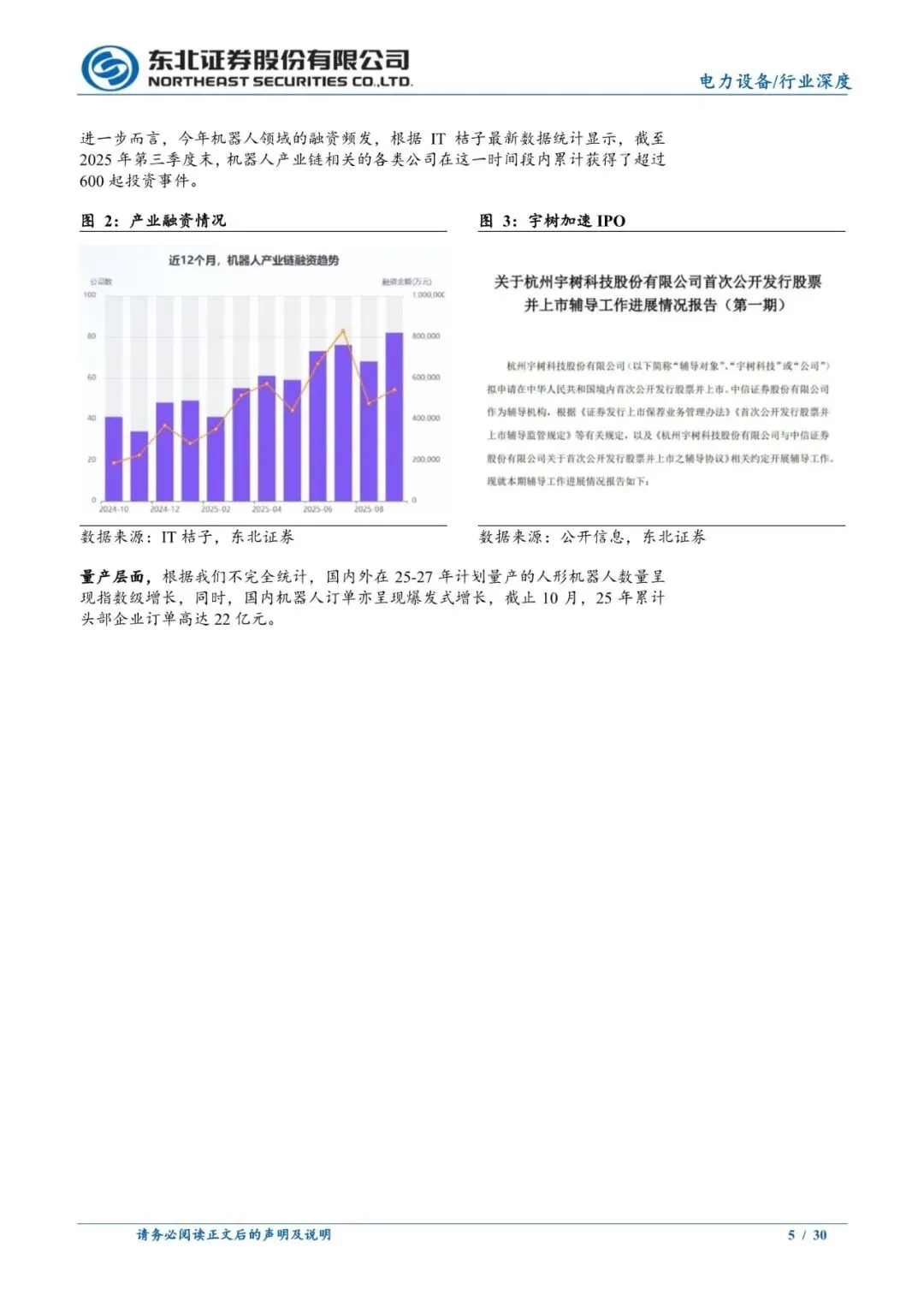 产业加速,星辰大海。今年以来,人形机器人正进入到政策支持、资本加码、主机厂加速量产的三维共振阶段。政策层面,今年以来,国内针对人形机器人的政策走向更为积极的方向,包括对产业的顶层设计和产业链的各环节扶持都陆续出台了相关政策,人形机器人的国内产业环境正逐步得到优化。资本层面,在产业资本的大力扶持下,人形机器人头部主机厂正加速融资,且包括宇树、智元、乐聚在内等企业已进入到IPO阶段。量产层面,根据我们不完全统计,国内外在2025-2027年计划量产的人形机器人数量呈现指数级增长,同时,国内机器人订单亦呈现爆发式增长,截止10月,2025年累计头部企业订单高达22亿元。