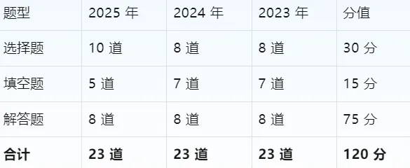 第 23 题作为全卷的最后一道题,通常是难度最大、综合性最强的题目。通过对近三年真题的分析,可以发现以下规律: