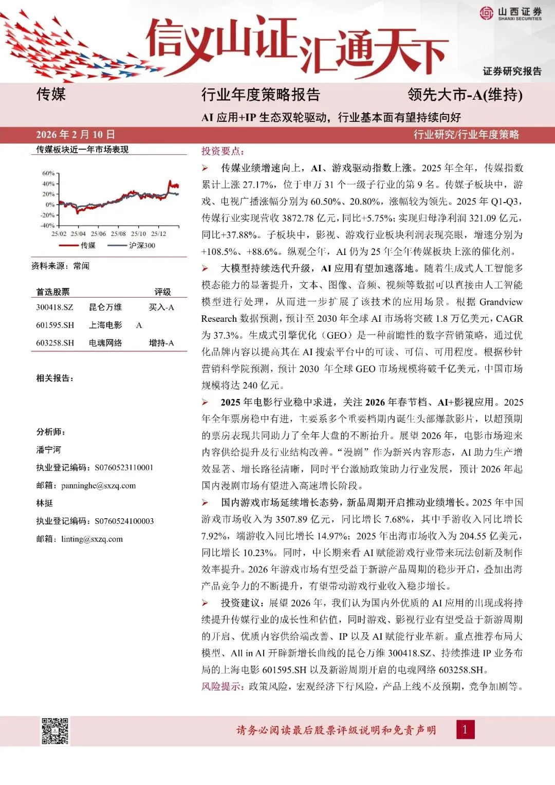 传媒行业年度策略报告:AI应用%2bIP生态双轮驱动,行业基本面有望持续向好-260210-山西证券-29页