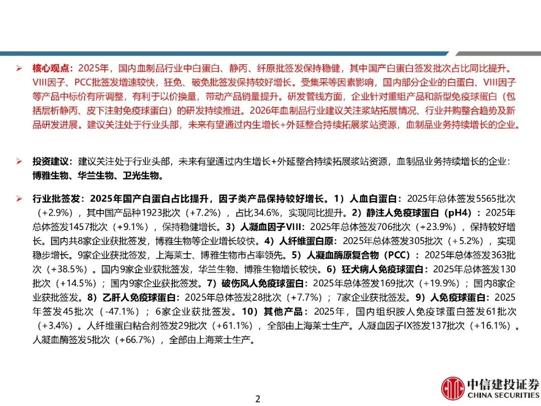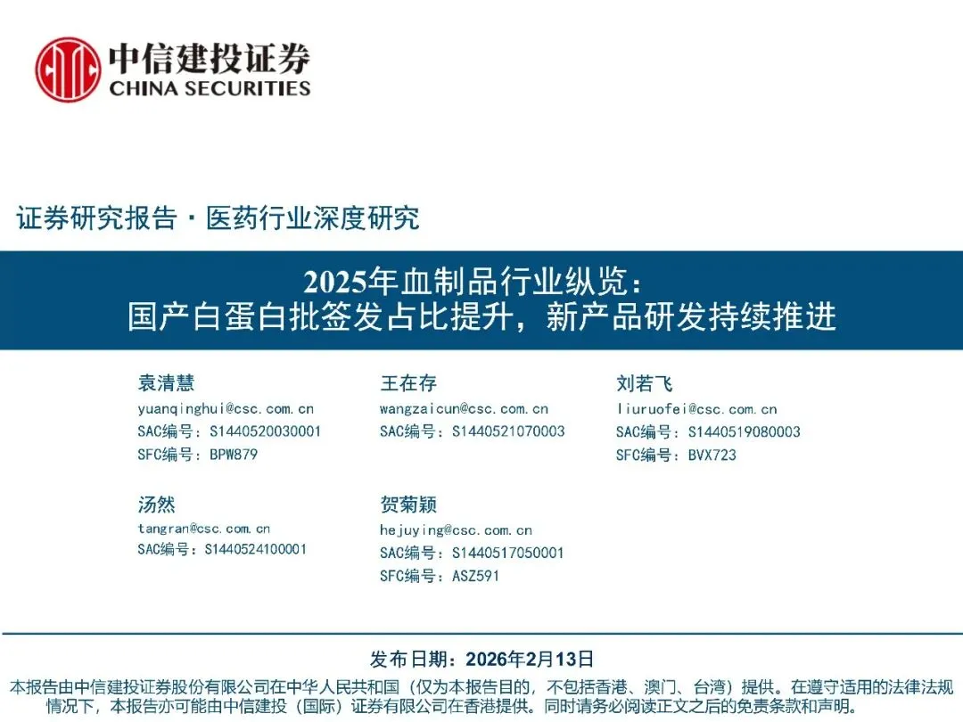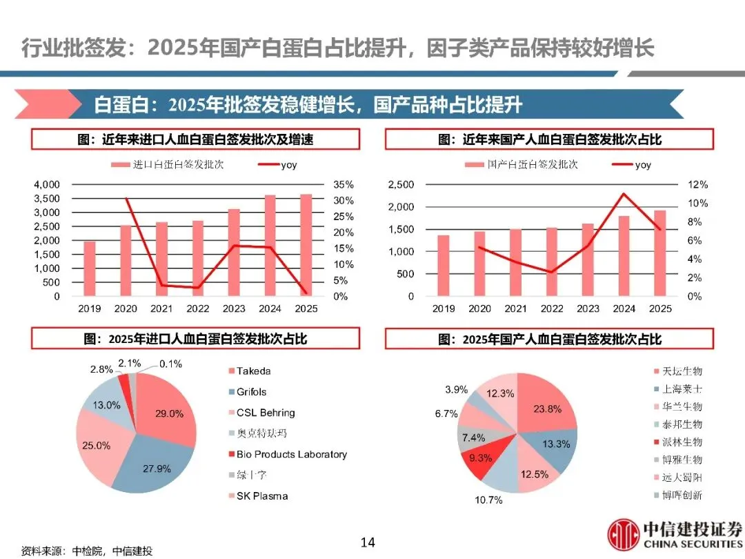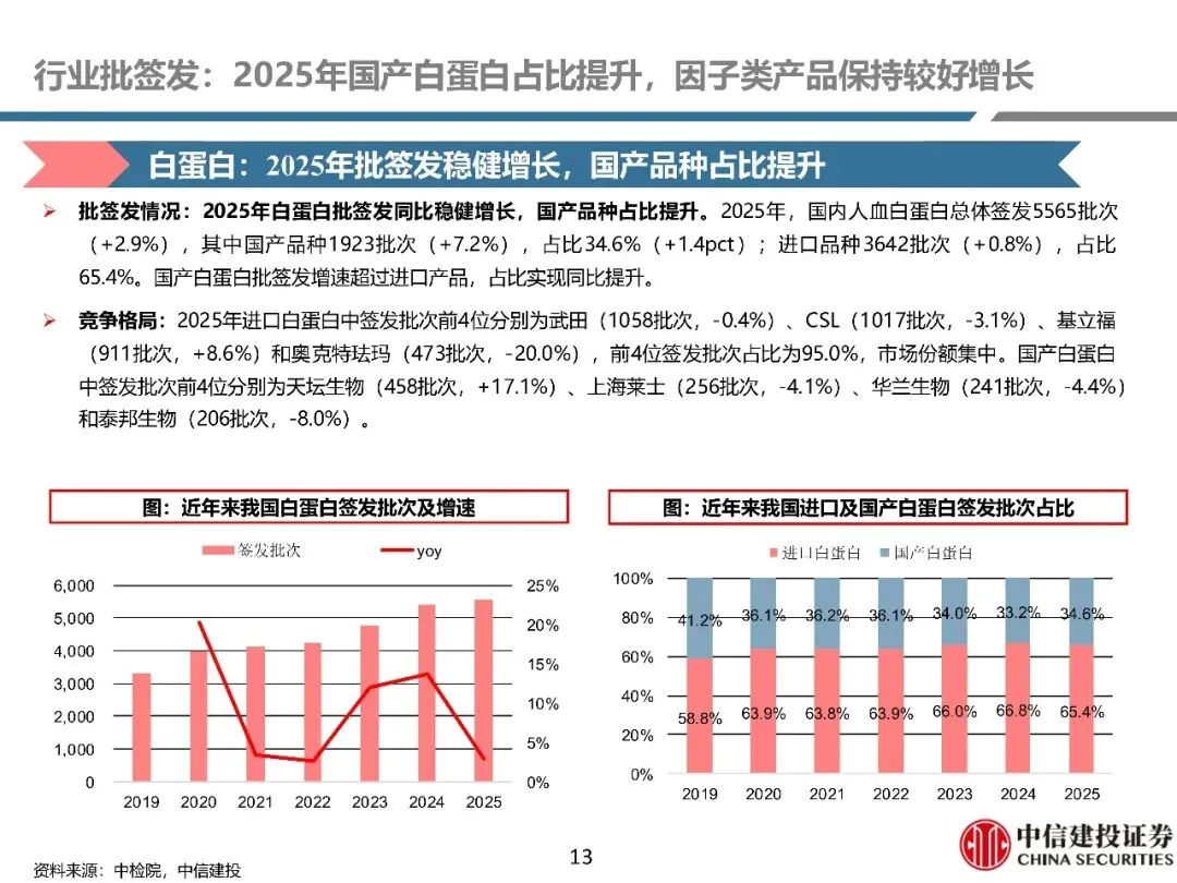 医药生物行业深度报告-2025年血制品行业纵览:国产白蛋白批签发占比提升,新产品研发持续推进(附下载)