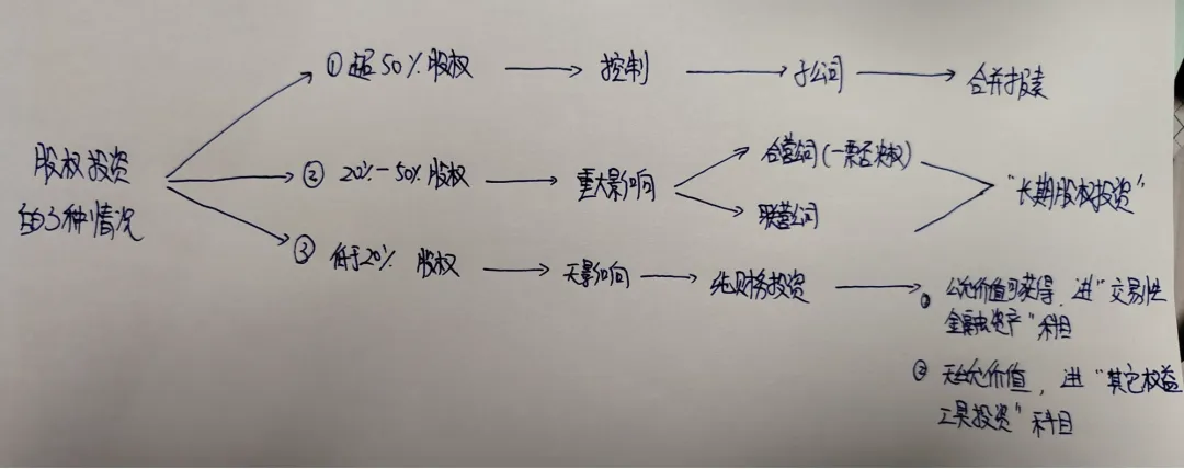 股权投资分3种情况,可用一张图直观表示。分别对应: