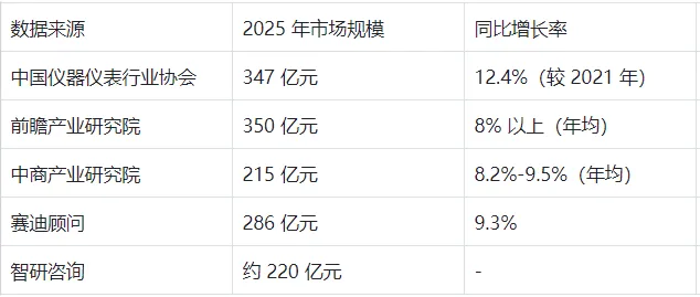 根据多家权威机构的统计数据,2025 年中国流量计市场规模存在一定的统计差异,主要源于统计口径、产品范围和统计时间的不同。以下汇总了主要机构的预测数据: