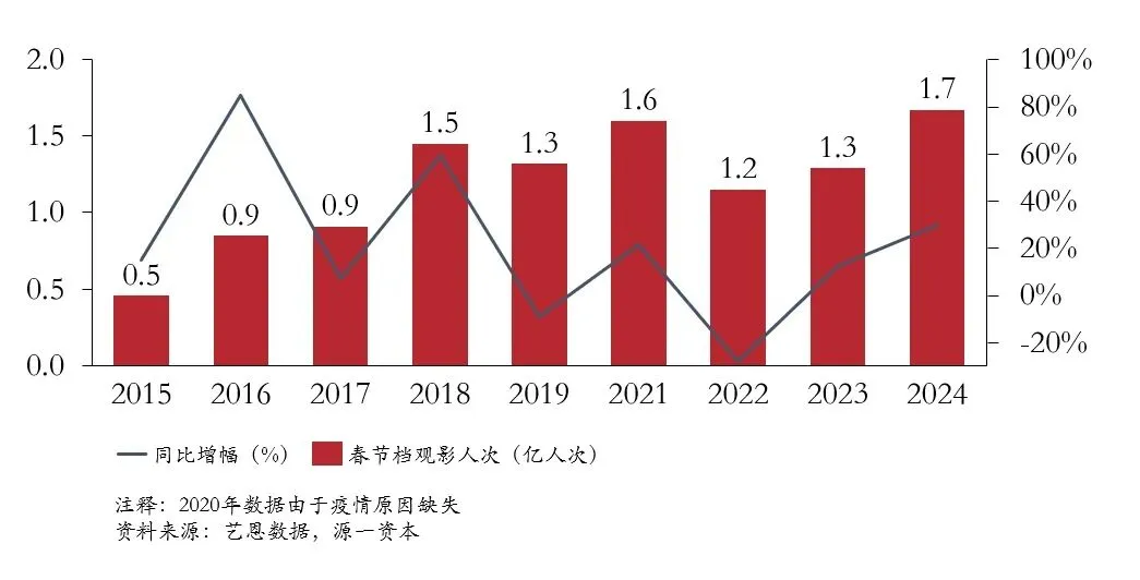 由于更大的返乡潮,更长的春节假期,以及在情人节的额外加持下,春节电影消费也呈现出“热辣滚烫”的态势。2024年春节八天票房达82亿元,同比增长21%,突破历史记录,并远超预期;观影人次达1.67亿次,同比增长29.1%[8]。根据艺恩数据,《热辣滚烫》领跑春节档电影,《飞驰人生2》位居第二,分别实现28亿元、24亿元的成绩[9]。