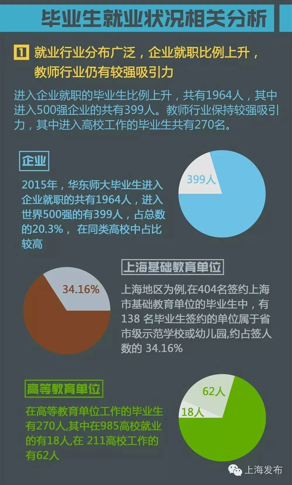 毕业生进入企业就职的共有 1964 人,进入世界 500 强企业的有 399 人。教师行业仍有较强的吸引力,进入高校工作的毕业生共有270名。
