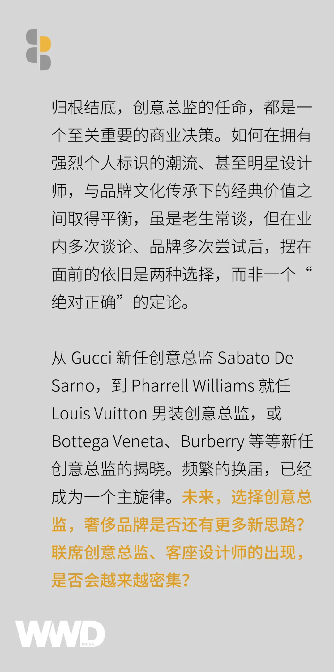 面对市场与文化现实的演变迭代、对创意总监的选择已经很难定论“绝对正确”,美学表现形式以外、基于模式及思路层面的推陈出现,已经成为唯一选择。基于此,不论是创意总监的选择、或更多品牌焕新之举,是否存在某种适度的范围和侧面?或由点及面、循序渐进的革新方式?