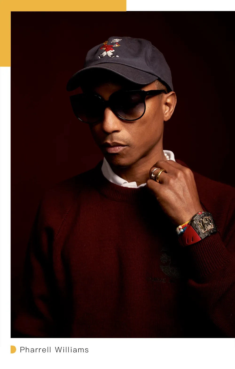 Pharrell Williams 出生于美国弗吉尼亚州,拥有唱片艺术家、制作人、词曲作者、慈善家、时装设计师等多重身份。据悉 Pharrell Williams 不仅拥有自己的服装品牌,在音乐及电影领域荣获多个奖项还曾创立非营利组织,激发了无数年轻人的潜能。2020 年,Virgil Abloh 曾在一次采访中透露,21世纪初的他曾深受 Pharrell Williams 的影响。
