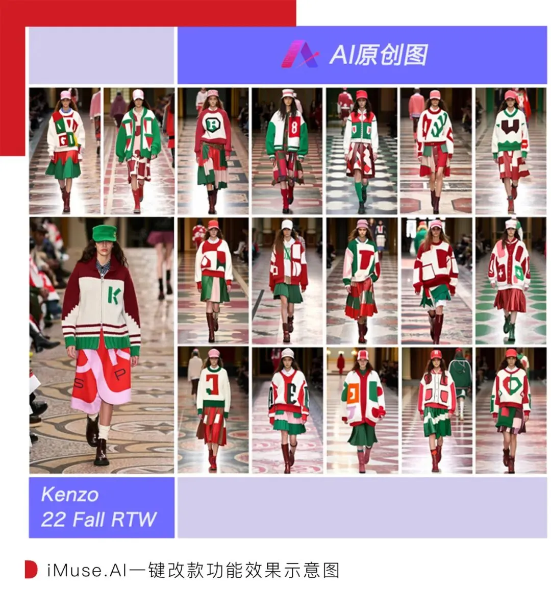 目前,国内首款专门针对时尚服饰行业的 AI 设计工具 Muse.AI 采用“图生图”的实现方式,在时装设计高级创作中配合选项进行辅助,帮助设计师实现一键改款、一键改风格、多图融合、从“创意企划”到“具体款式”落地等效果。