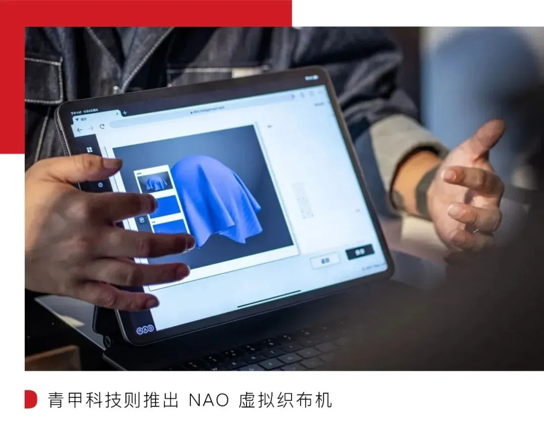在中国从世界工厂到智能制造转型的过程中,有许多传统纺织厂在拥抱新技术中创造了业内传奇。比如,由“纺二代”郑琦创立的纺织科技企业,青甲科技则推出的 NAO 虚拟织布机,通过高运算能力,电脑对纺织机的机械结构、针和轨道的模拟,深度学习纺织面料工程师的智能理论、方法、技术及应用,实现运用人工智能研发新型面料的同时,实现对各种类织造工艺的高精度进行模拟。既直观提效,又节能减排减少浪费。