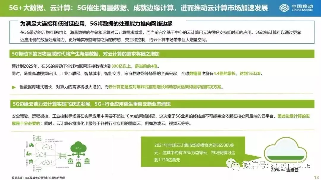 近日,中国移动发布《5G产业发展与投资报告》,相关信息很有价值,如下所示: