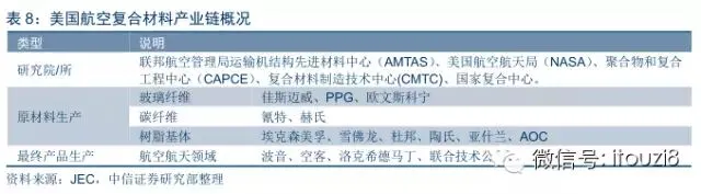 在航空复合材料产业链的各个位置,美国均拥有全球领先的代表性厂商: