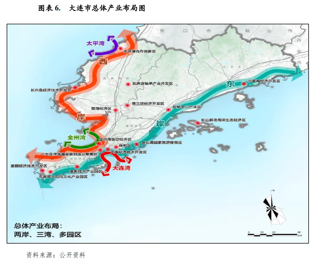 [1] 19个省重点产业集群分别为高新区软件、金普新区装备、大孤山石化、金普新区电子、瓦房店轴承、大连湾临海装备、庄河农产品深加工、庄河机床、普兰店服装、普湾新区电力设备器材、金普新区生物医药、旅顺船舶及配套、普湾新区松木岛、西中岛、黑岛化工、长兴岛石油化工、花园口新材料等。