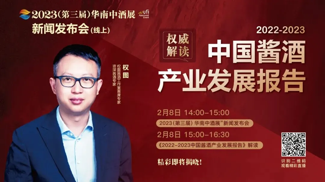 2月8日15:00-16:30,资深酱酒专家、权图酱酒工作室首席专家权图将做客酒业家直播间,带来其最新出炉的研究成果——《2022-2023中国酱酒产业发展报告》,酱酒产业最新数据、深度解析、趋势与机遇、重磅观点等都将一一发布,值得期待!