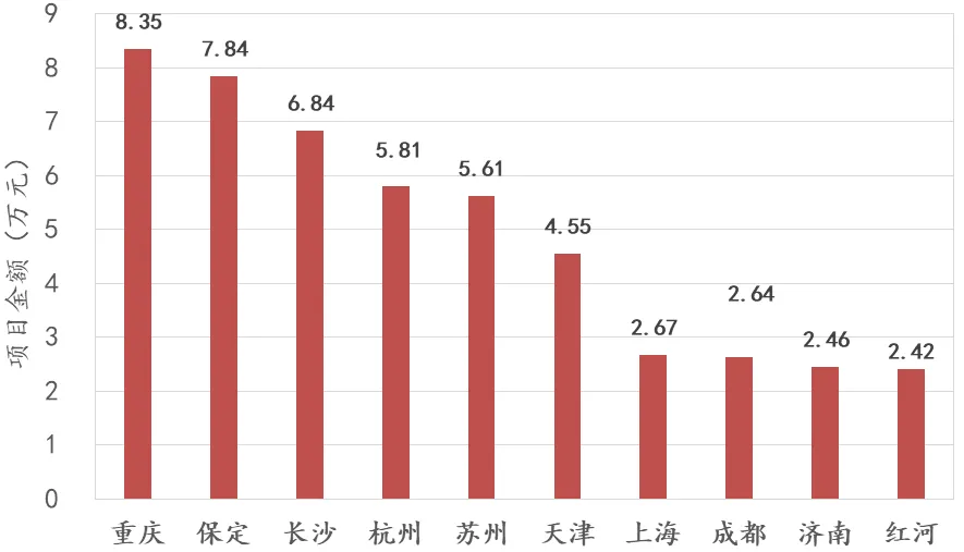 图8 2020年项目金额排列全国前10位的城市项目金额图