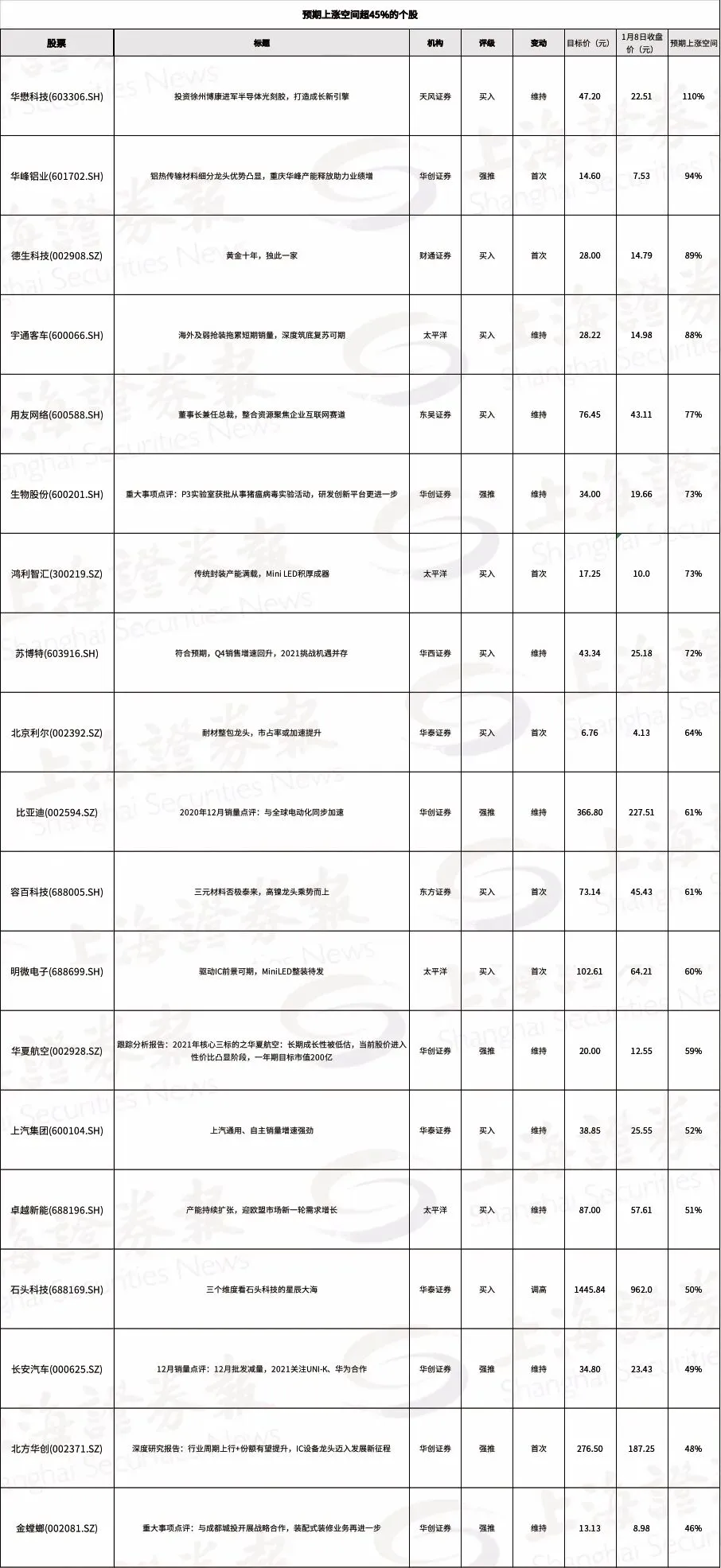 需要指出的是,券商研究员的目标价往往是根据一定的模型计算得出,仅具有一定的参考意义。但更重要的是研究结论背后的逻辑,投资者在选股时应根据行业发展趋势、公司基本面等信息作出自己的判断。