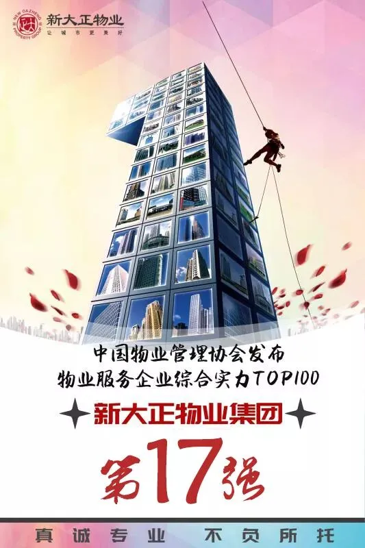 新大正物业经过20余年的市场化发展,成长为专业的第三方物业服务公司,已进入14个省市开展业务,2009年到2017年8年间,每年保持业务稳健递增。公司坚持“真诚专业、不负所托”的服务理念,践行“以客户为本、以员工为本、以可持续发展为本”的行为宗旨,全面打造“升级基础物业服务+延展公共资源与资产管理+大数据创新业务”运营模式。
