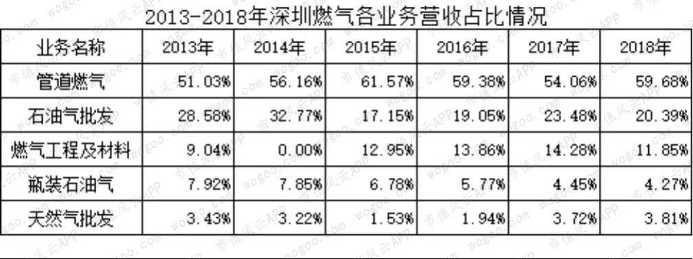 深圳燃气(601139.SH)是一家以管道燃气、燃气批发和瓶装燃气供应的综合性企业,其中,管道燃气业务收入占比最高,2013年以来占比均在50%以上,其次是石油气批发,占比20%左右。