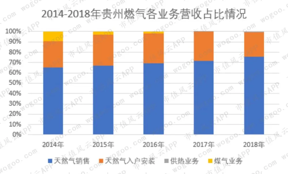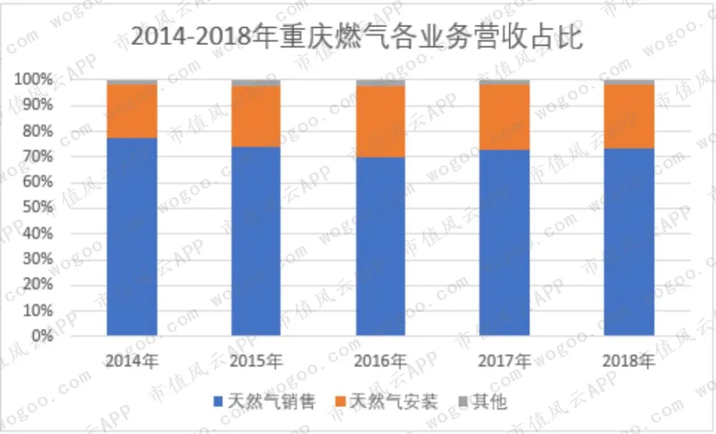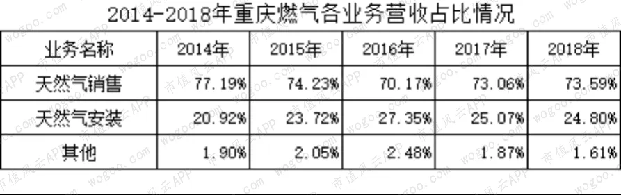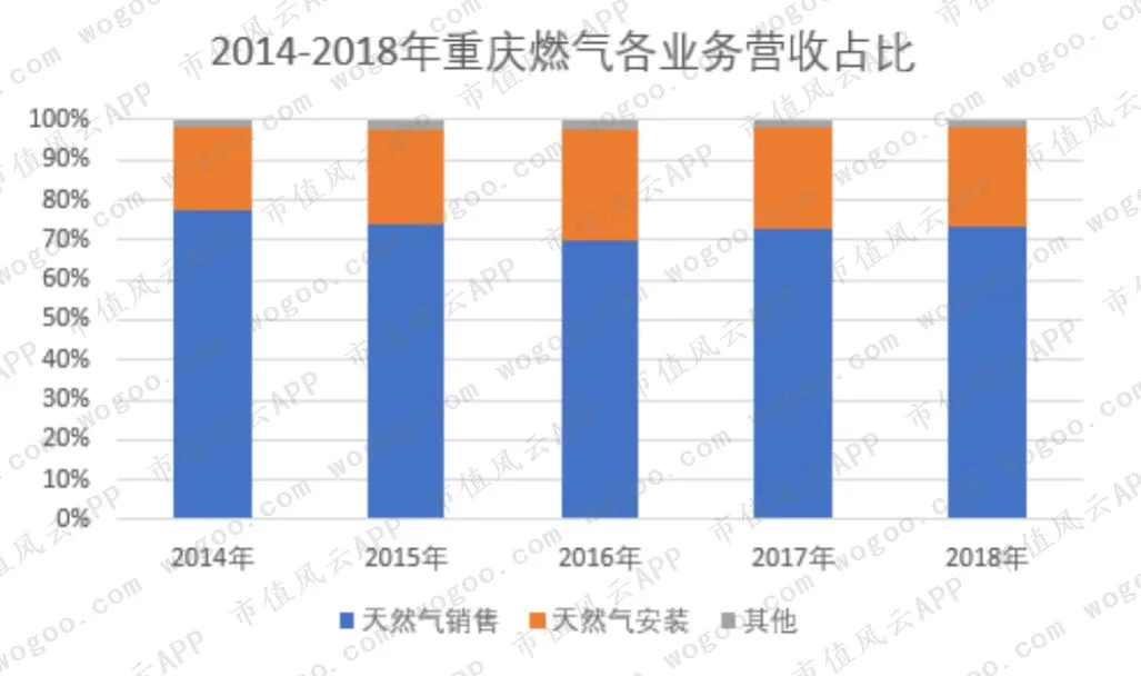 其中,以天然气销售业务为主,毛利率10%左右,天然气入户安装业务虽占20%左右,但毛利率则高达50%以上。