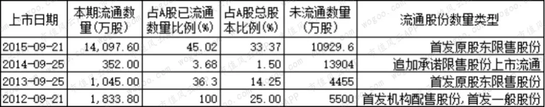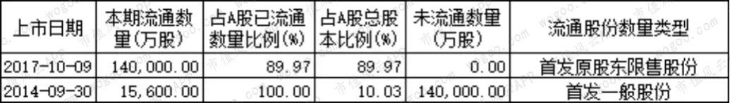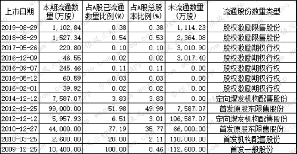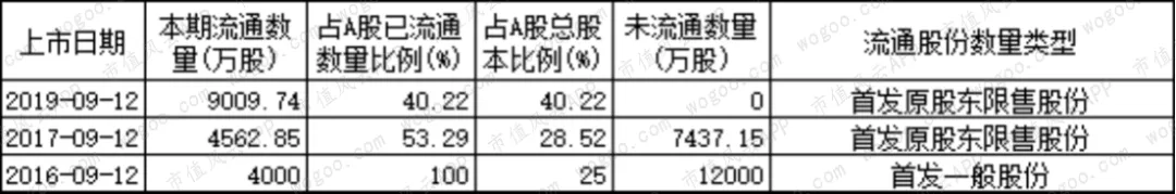 2019年无限售解禁。