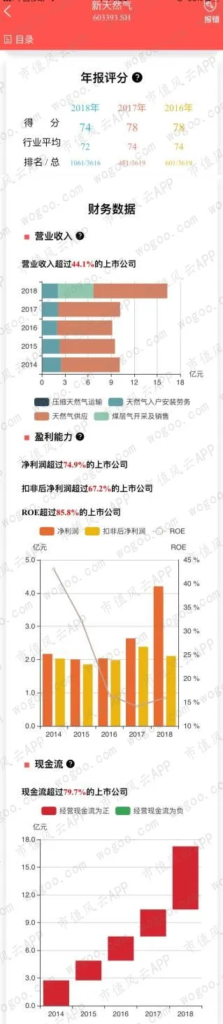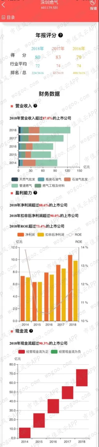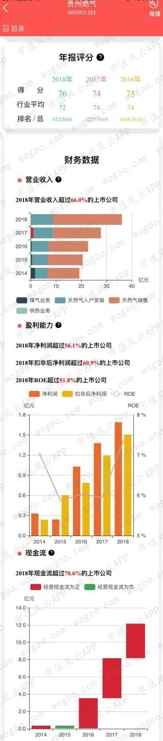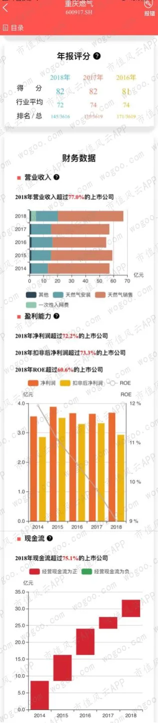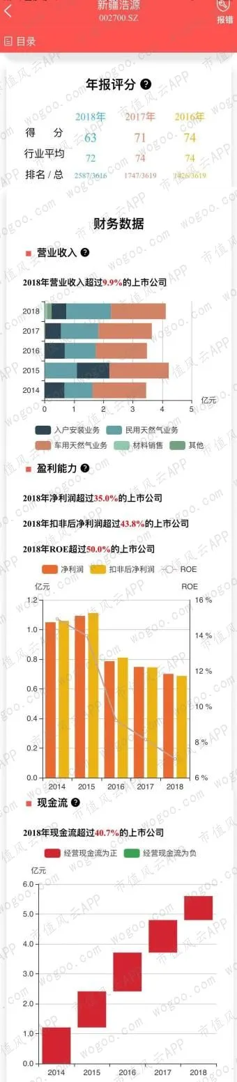 最近三年的年报评分均高于行业平均,2018年营业收入、净利润增长明显,扣非净利润则出现小幅下滑;经营性现金流连续流入,5年现金流净流入62.37亿元。