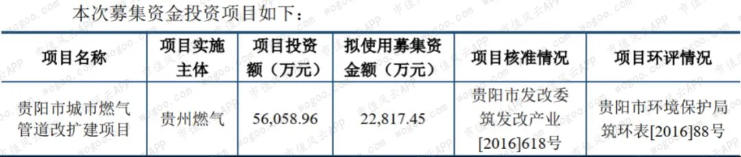2017年募投贵阳市城市燃气管道改扩建项目,其项目建设周期为3年,见下截图: