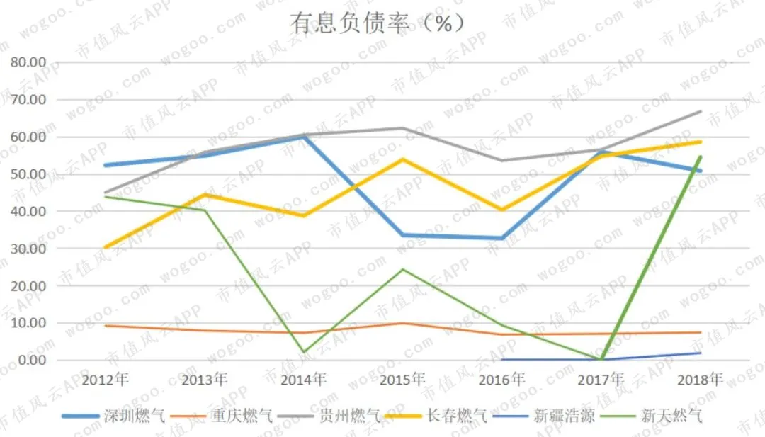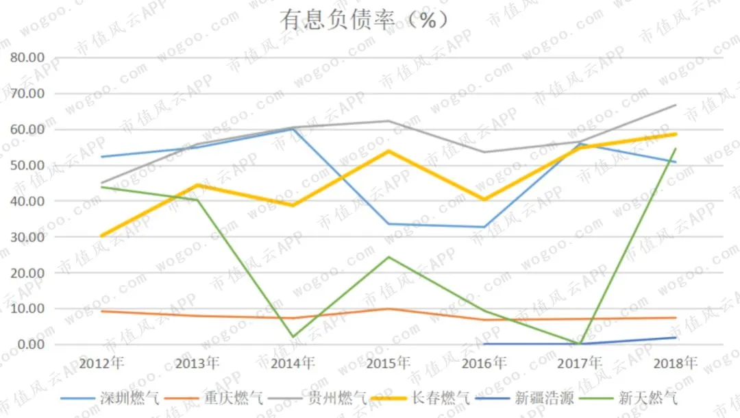 需要注意的是,贵州燃气、长春燃气的有息负债率长期处于较高水平,并且与各自的资产负债率相差不大。