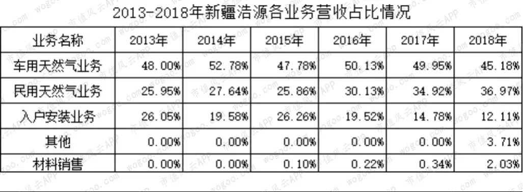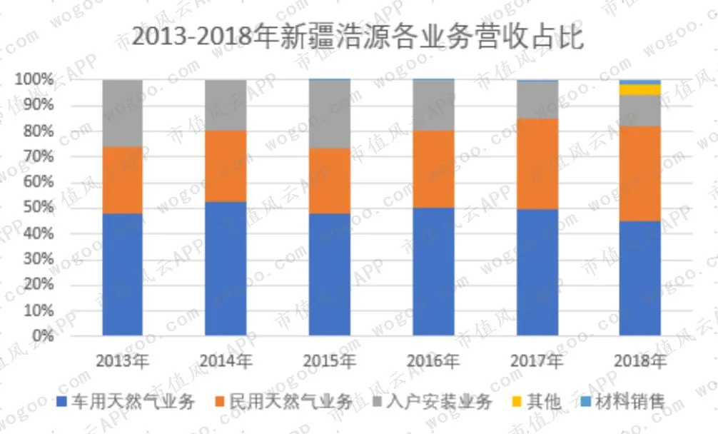 新疆浩源以车用加气站为主,占比接近50%,但整体规模较小,营业收入增长一般;