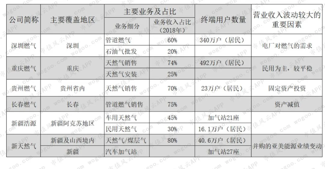 同属于燃气行业,本文中的6家企业却呈现出不同的发展特征。