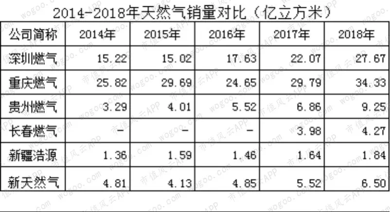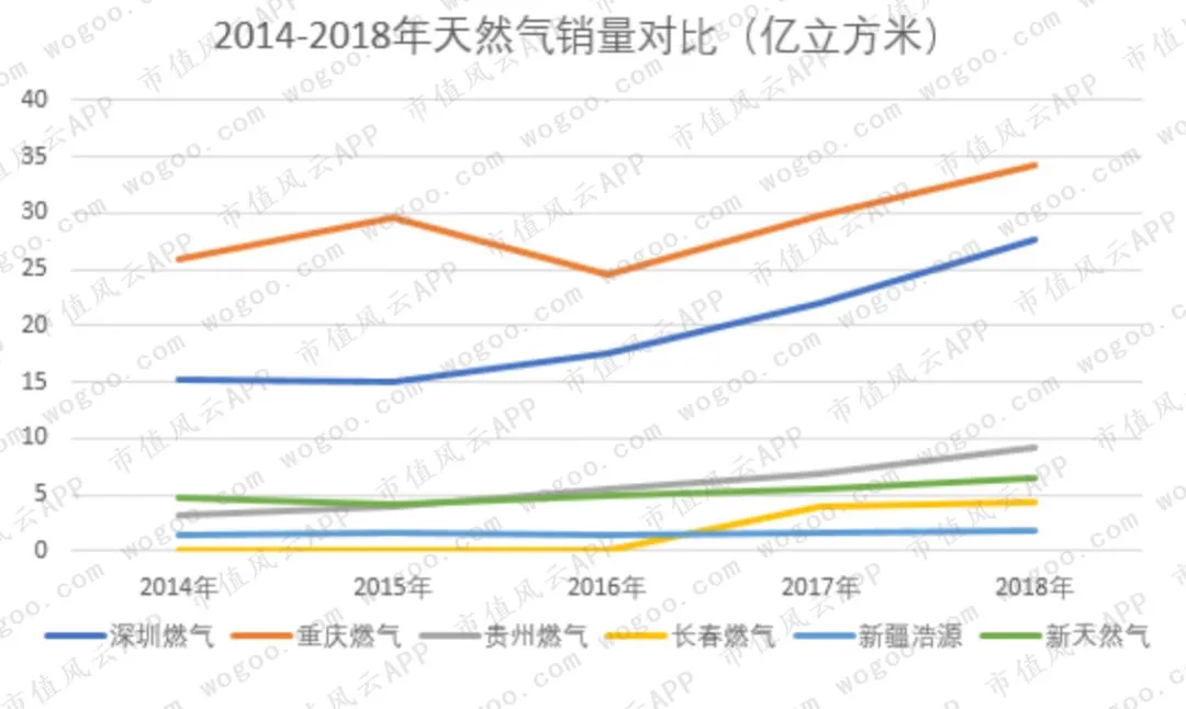 值得注意的是,重庆燃气的天然气销售量高于深圳燃气7亿立方(2018年),但是前者的营业收入却比后者少60亿元。